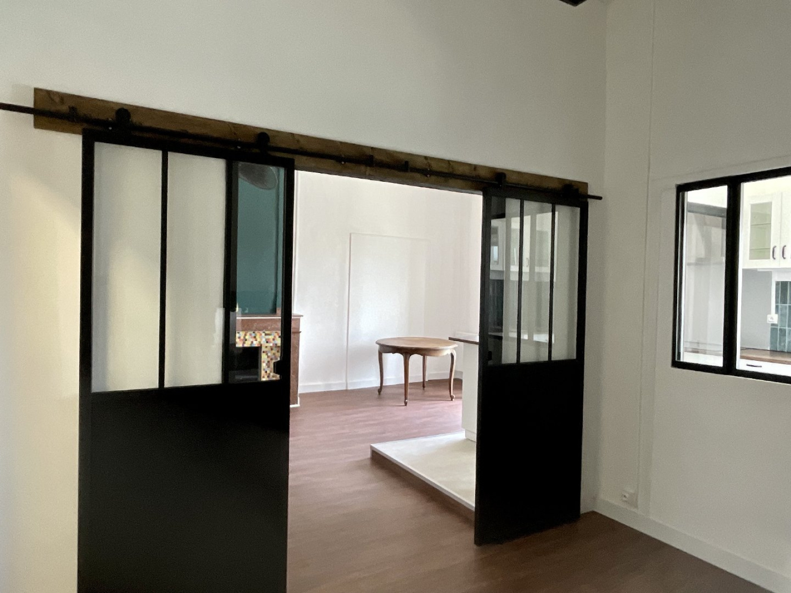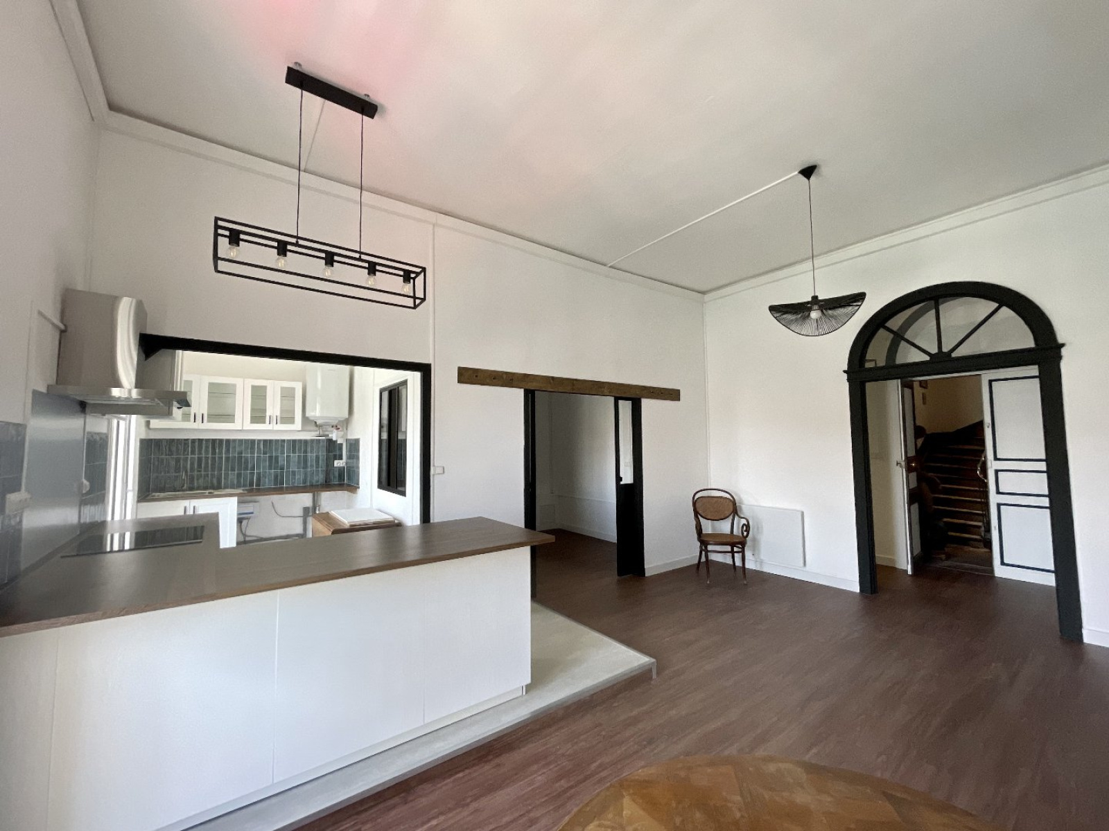 Dès l'entrée, vous trouverez la pièce de vie avec une cuisine équipée donnant sur le quai.
