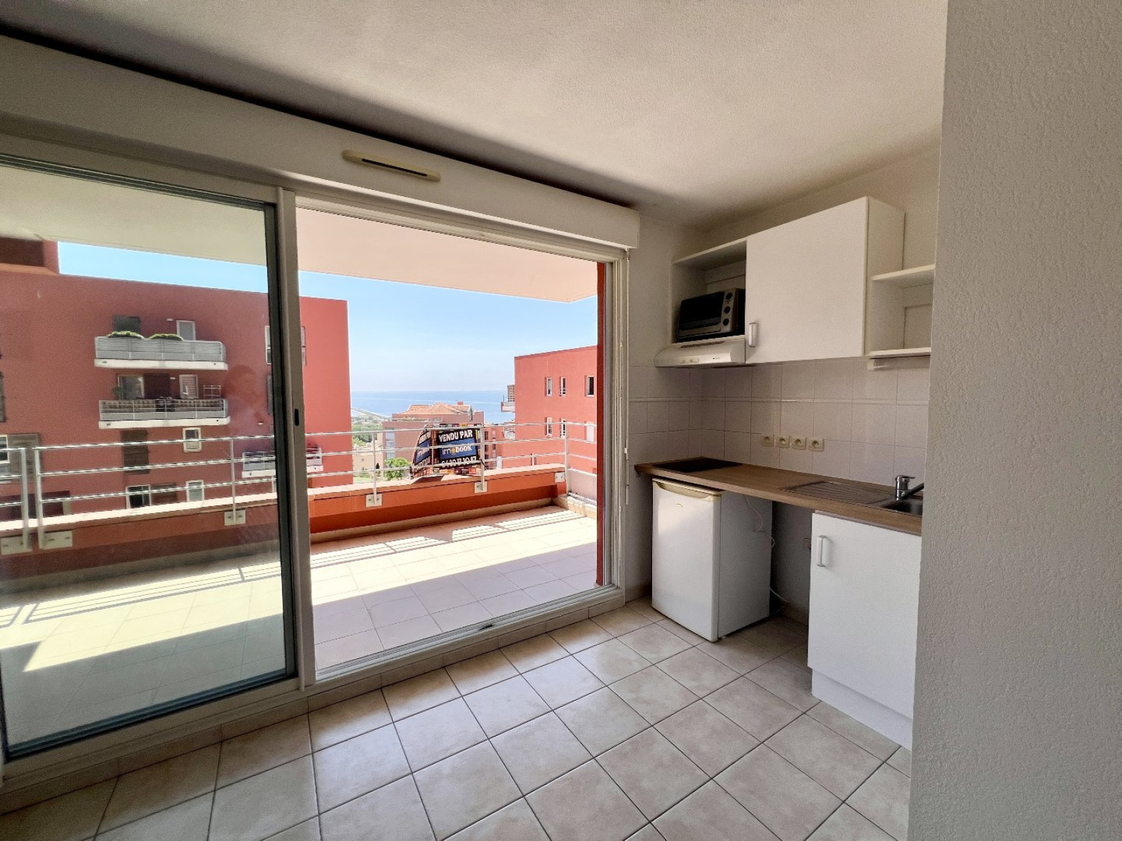 Il se compose d'une entrée donnant sur la pièce de vie lumineuse avec coin cuisine, le tout s'ouvrant sur une terrasse offrant une vue sur l'Étang de Thau.