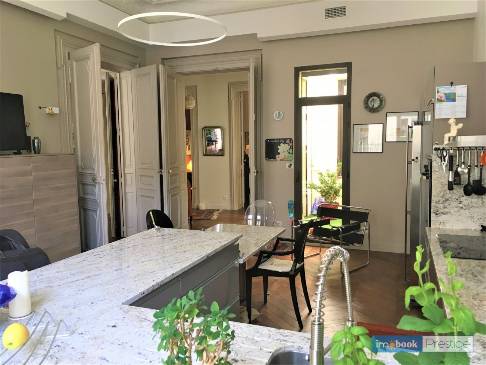 Côté Centre-ville, Dans un immeuble haussmannien du c?ur de ville, appartement T4 de 180m² plein sud, rénové par un architecte de renom dans les règles de l'art (parquet d'origine, moulure, cheminées et portes), une alliance entre l'ancien et le moderne, traversant, copropriété très entretenue (cage d'escalier, façade et toiture refaite). Appartement avec patio intérieur et terrasse, dépendance de 40m² avec cour privative au rez-de-chaussée. Coup de C?ur assuré ! Secteur recherché.