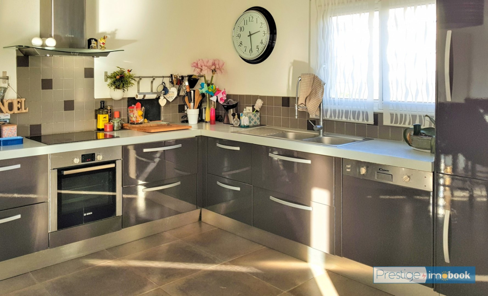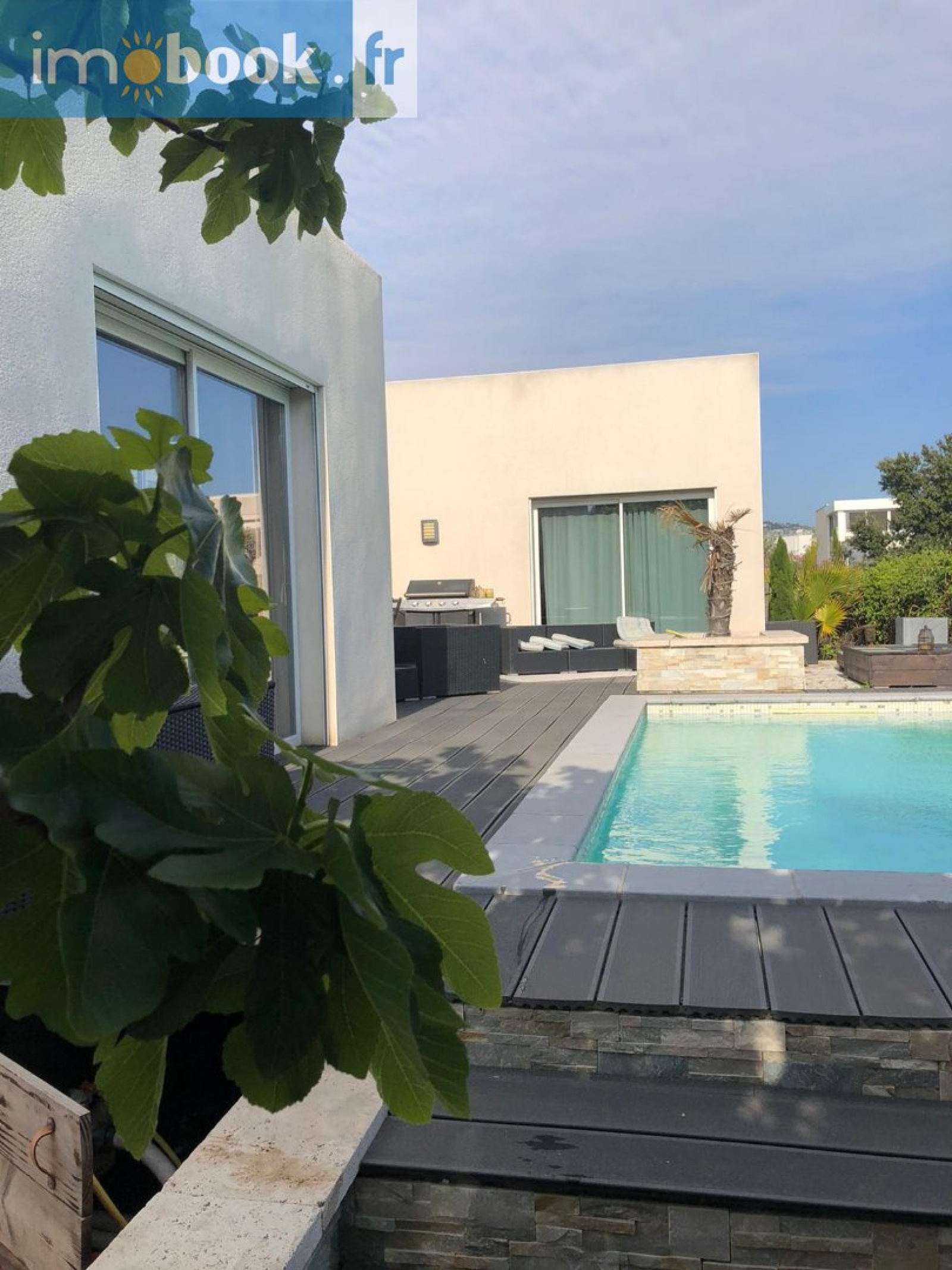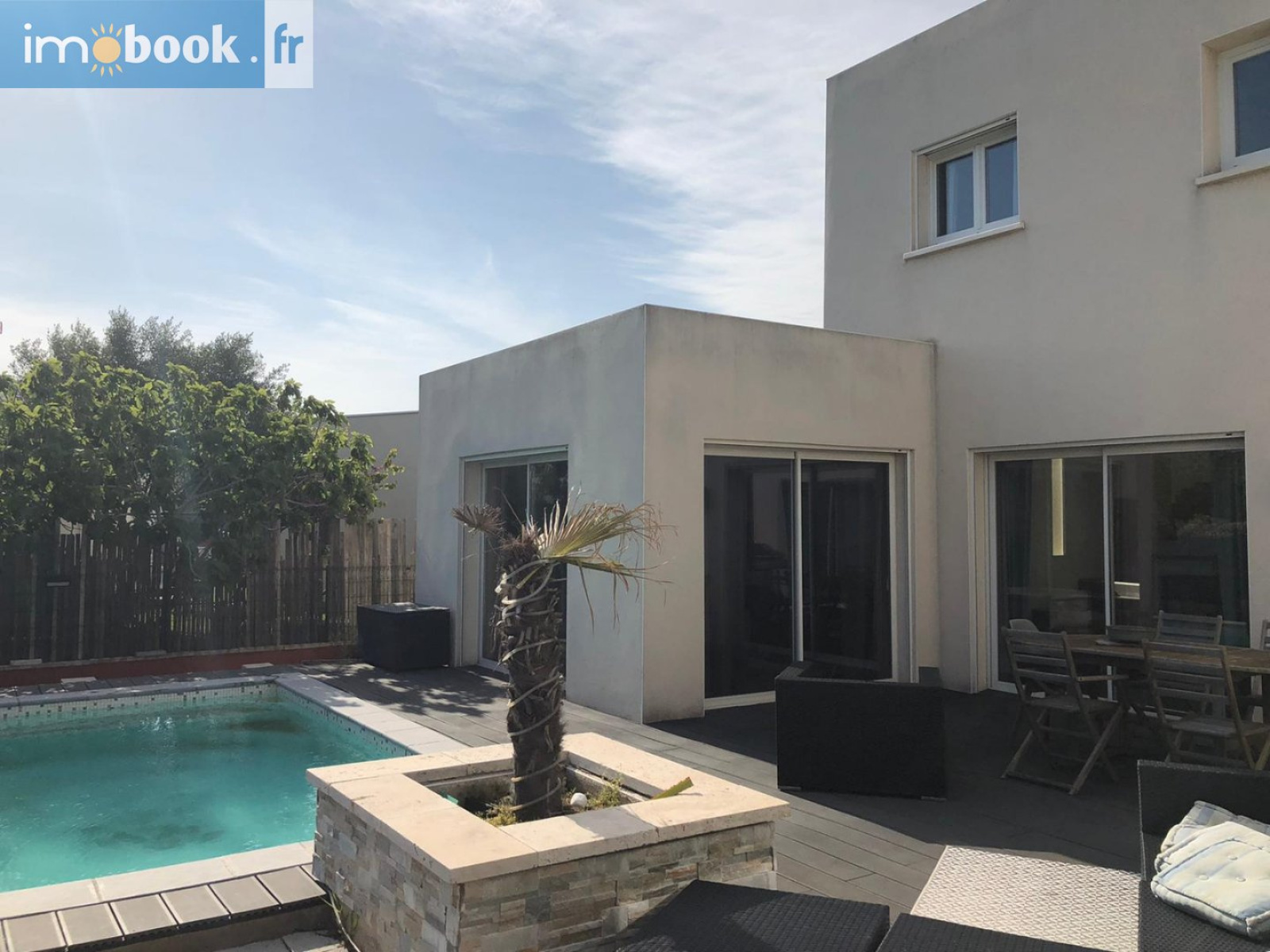 Rue du sirocco, Côté Villeroy, Sur un terrain de 405m², villa contemporaine T4 de 121m² à deux pas des plages avec de beaux volumes et de belles prestations dont une construction en béton banché totalement isolée. Au rez-de-chaussée une pièce de vie conviviale et spacieuse. Salon et salle à manger disposés en U exposés plein Sud donnant sur une grande terrasse avec une belle vue dégagée sur un jardin arboré avec une piscine équipée. Son plus : 4 jets de massage. Cuisine américaine aménagée et équipée, en L avec une table haute. Suite parentale avec douche italienne, double vasques, dressing et un WC. Garage de 31m² (plus mezzanine) fermé d'une porte automatisée, devant une grande place de stationnement privative sécurisée par un portail automatique. À l'étage, une terrasse solarium plein Sud avec une vue panoramique sur le Saint Clair, une salle de bain équipée, un WC suspendu et 2 chambres aménagées de placards.