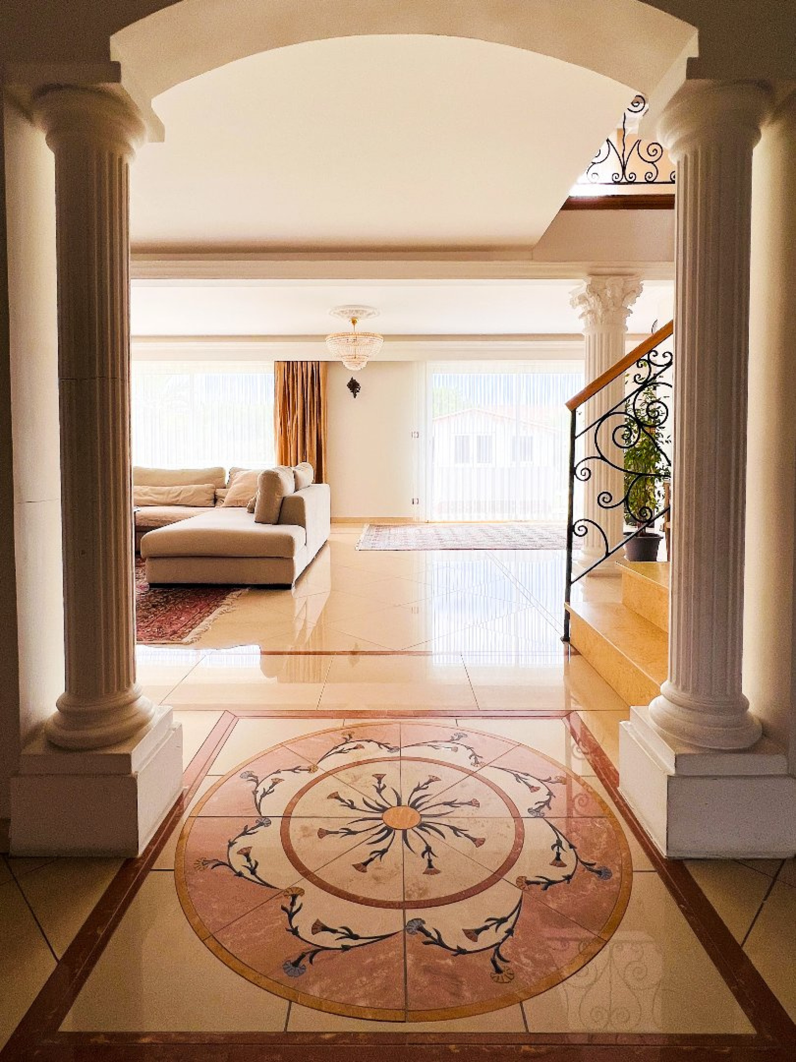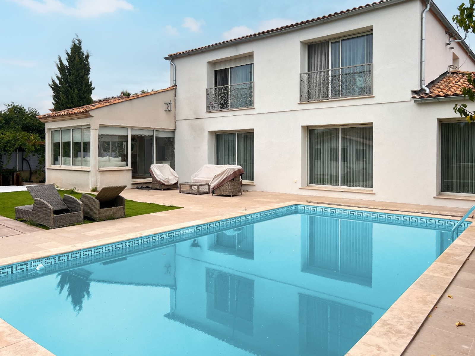 Elle se compose au rez-de-chaussée, d'un vaste hall d'entrée desservant un espace bureau sur la gauche et sur la droite une suite parentale avec dressing et salle d'eau. Sur le même niveau, vous profiterez d'un somptueux salon-séjour de plus de 70m² donnant sur le jardin et la piscine, la cuisine en granite se trouve dans la continuité du salon, ce même espace donne sur une véranda climatisée avec accès sur la piscine.