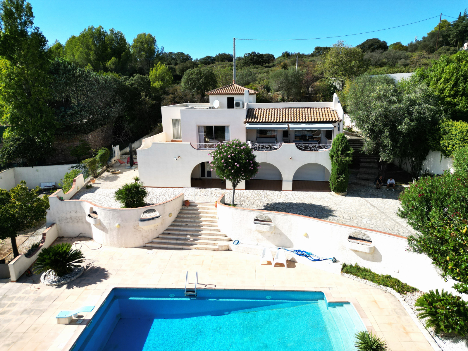 La villa de 210 m² est implantée sur une parcelle de 1800 m². Lumineuse et spacieuse, elle a été rénovée avec soin en préservant son charme et son caractère d'origine.