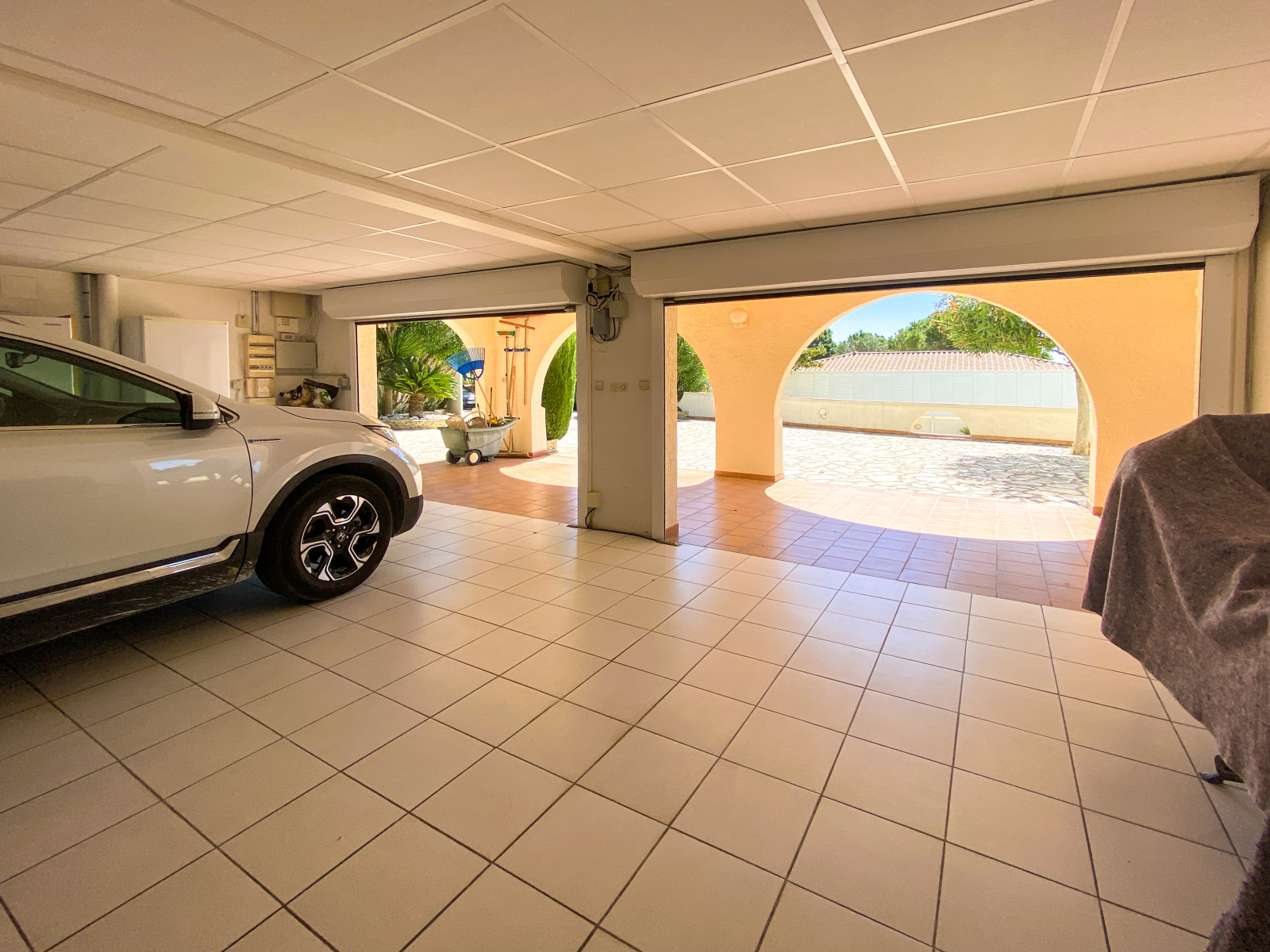 Cette maison dispose d'un double garage de 55 m² avec une cave à vin pouvant accueillir vos voitures et offrant un espace de rangement pratique pour les outils et les équipements.
